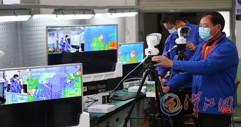 3月9日,在襄陽國鐵機電股份有限公司,工作人員正在調試熱成像快速測溫系統(tǒng)。本公司2月23日成功研發(fā)了熱成像快速測溫系統(tǒng),該系統(tǒng)可實現(xiàn)對進出人員體溫檢測、人臉識別、實名制驗證和考勤管理,可同時對30-50人進行體溫快速檢測、篩查、報警。在疫情防控期間,本公司一天能夠生產(chǎn)30多臺設備,目前用于全市的疫情防控指揮部門、部分醫(yī)院及復工復產(chǎn)的企業(yè),下一步將投入到學校。