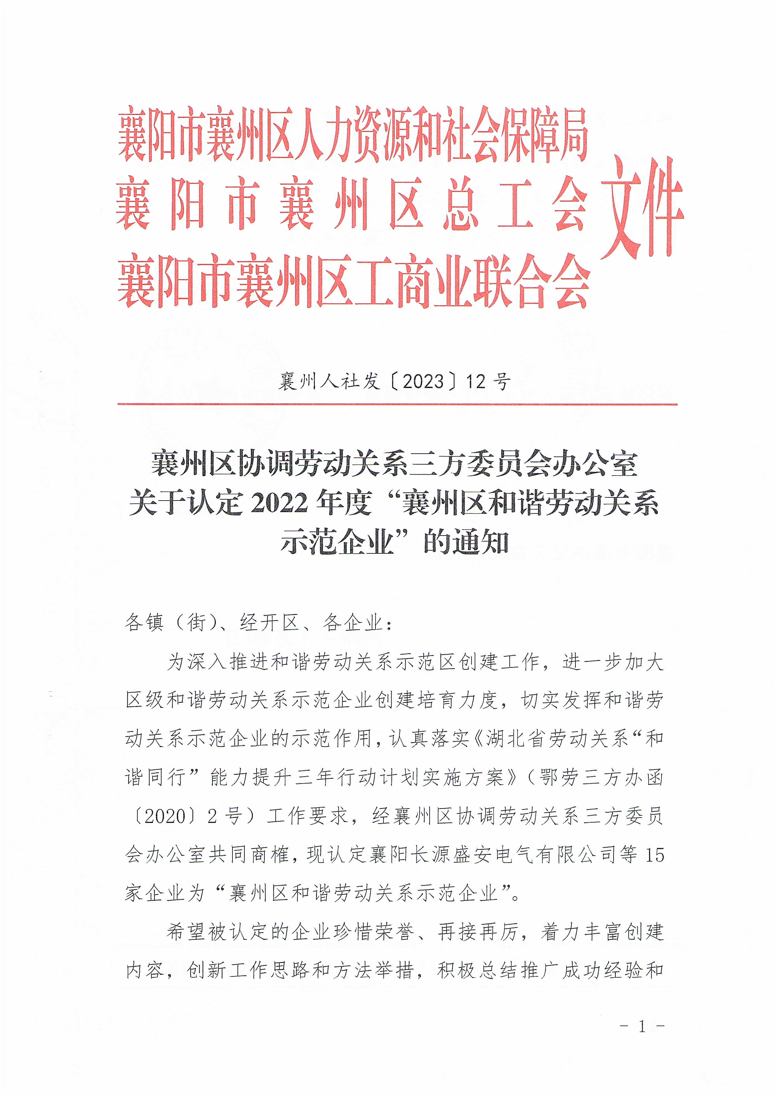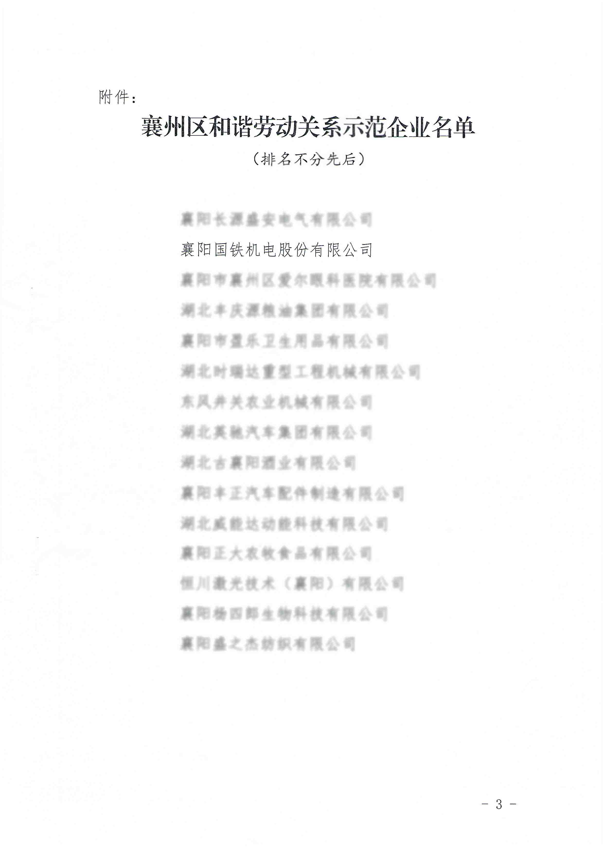 國(guó)鐵機(jī)電獲“襄州區(qū)和諧勞動(dòng)關(guān)系示范企業(yè)”榮譽(yù)